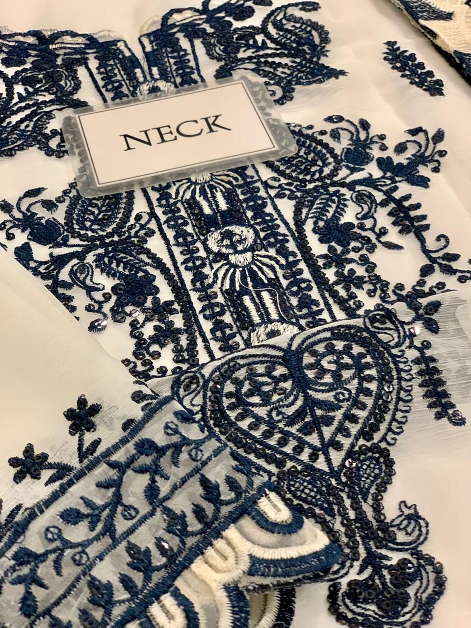 chiffon fully embroidered spengle work back with heavy embroidered spengle work back daman boarder with embroidered spengle work chal lace